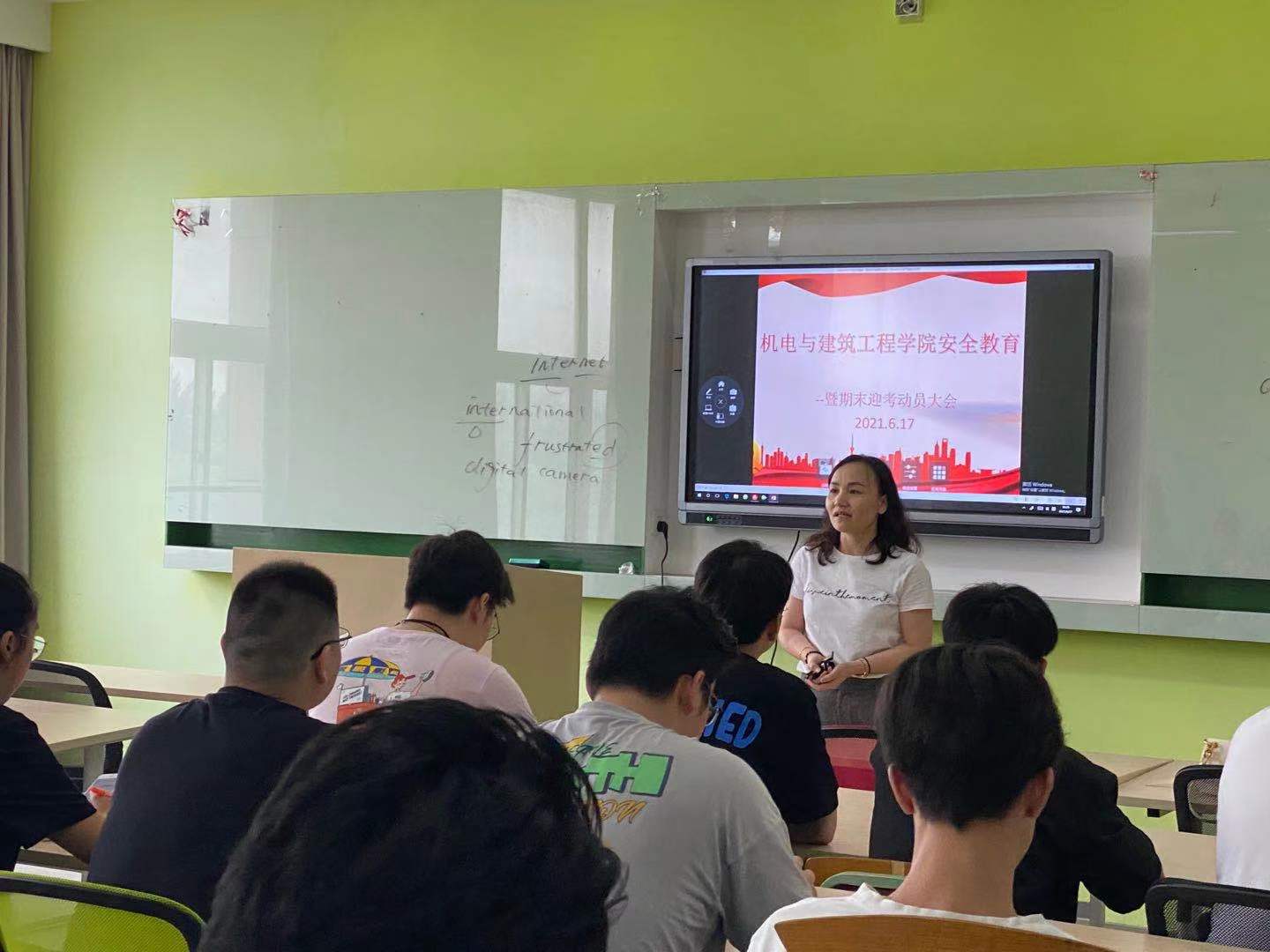 2021年6月17日下午,机电与建筑工程学院在美兰湖校区召开以“以诚促信,以信取胜”为主题的安全教育大会暨期末迎考动员大会。本次会议由学院党总支书记钟燕华主持,学生处处长陈亚立,全体辅导员及19级、20级学生干部、入党积极分子、预备党员出席本次会议。