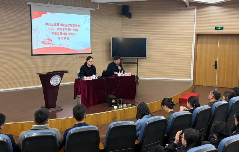 11月10日,上海震旦职业学院2025-2026学年第一学期党员发展对象培训班在体艺楼报告厅开班。党委副书记黄敏、党委组织部副部长(主持工作)翁昊年、各二级学院党总支书记及全体学员参加了开班仪式。仪式由翁昊年主持。