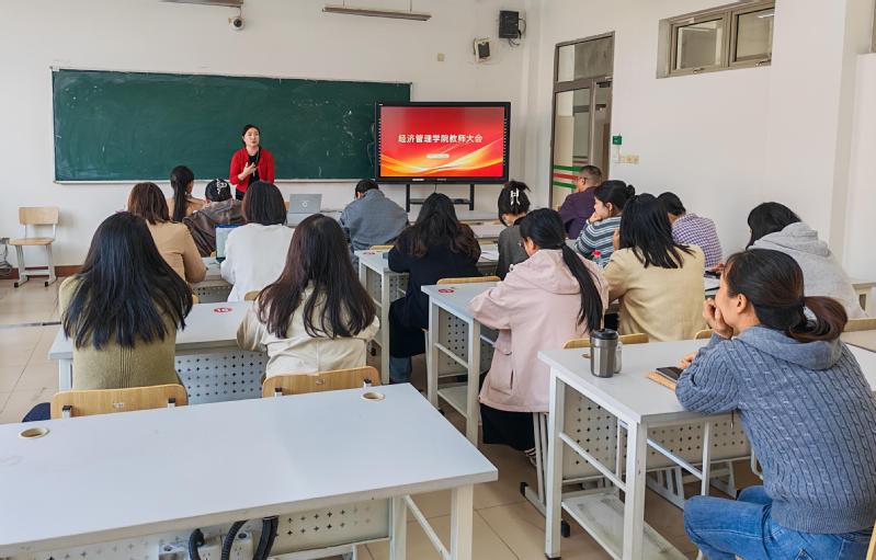 为进一步提升教学质量、规范教学行为,明确近期重点工作方向,11月14日,经济管理学院召开全体教师大会。会议围绕近期工作部署、教学技巧提升及AI智能教育技能培训三大核心议题展开。会议由副院长曹凤兰主持。